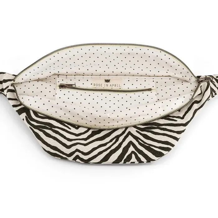Craquez pour le Sac Banane Zèbre Greige de Rose in April, l’accessoire mode parfait pour dynamiser vos tenues.