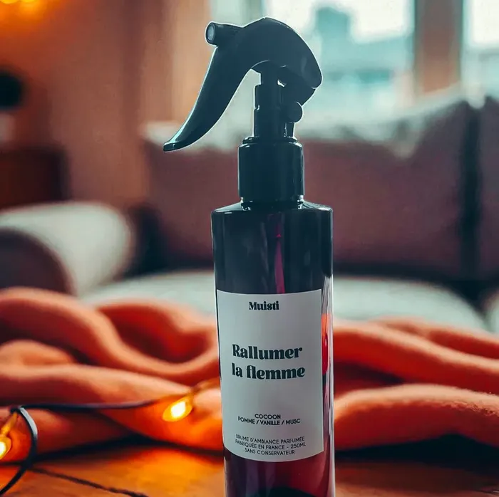 La brume d’ambiance Rallumer la flemme apporte une dose de réconfort parfumé à votre intérieur.