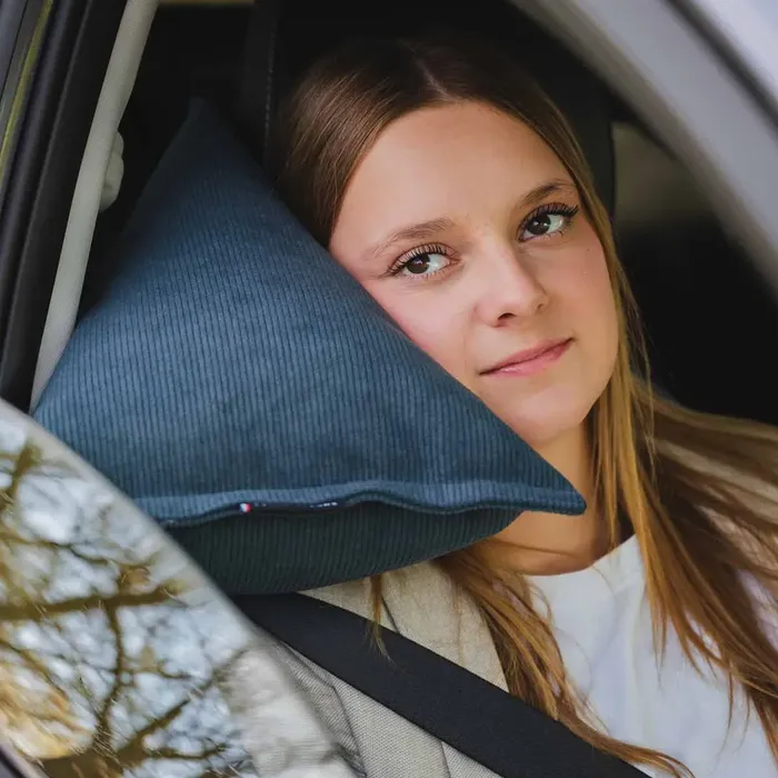 Je suis une alternative directe aux oreillers de voyage classiques et aux solutions de fortune pour dormir en voiture.