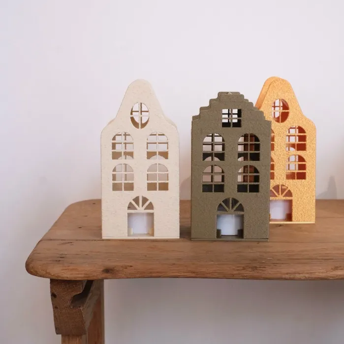 Activez la LED incluse pour voir les fenêtres s’illuminer et créer une ambiance féérique. Un petit objet design, éthique et facile à collectionner dans ses quatre coloris : Blanc, Bronze, Marbré et Doré.