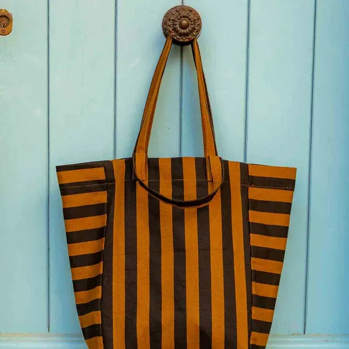 Découvrez le Sac Cabas Elisabeth Rayures Cumin de Rose in April, l’accessoire indispensable qui allie parfaitement style, praticité et engagement responsable. Avec ses élégantes rayures cumin (un mélange de jaune moutarde et de beige), ce grand sac cabas femme apporte une touche de soleil et de tendance à toutes vos tenues, du bureau aux virées shopping.