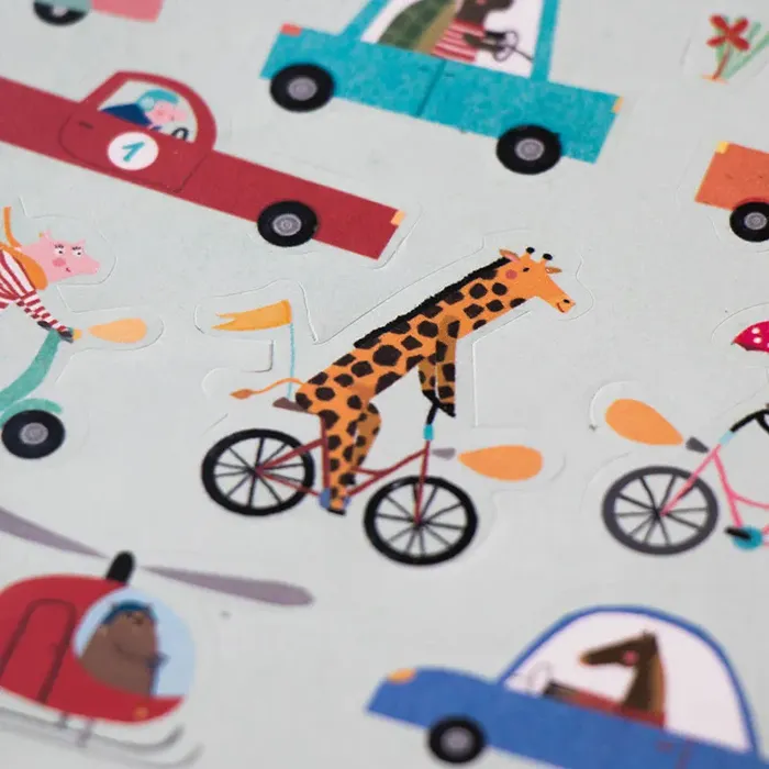 Les enfants créent leur propre ville, puis la transforment à volonté : les stickers sont repositionnables, parfaits pour inventer de nouveaux quartiers, tracer des routes, modifier la circulation ou ajouter de nouveaux bâtiments. Une activité créative simple à transporter et idéale pour stimuler l’imagination.