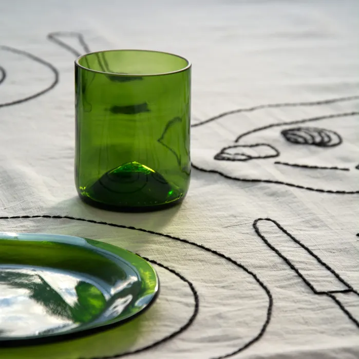 Feuille Morte : Un vert riche, tirant sur l’ambre et l’ocre (issu des bouteilles Bourguignonnes). Apporte une touche chaleureuse et automnale à votre table.